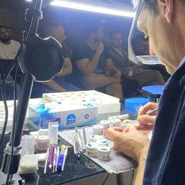 the manual touch after milling, the sintering process, Milai layering on teeth & gingiva “